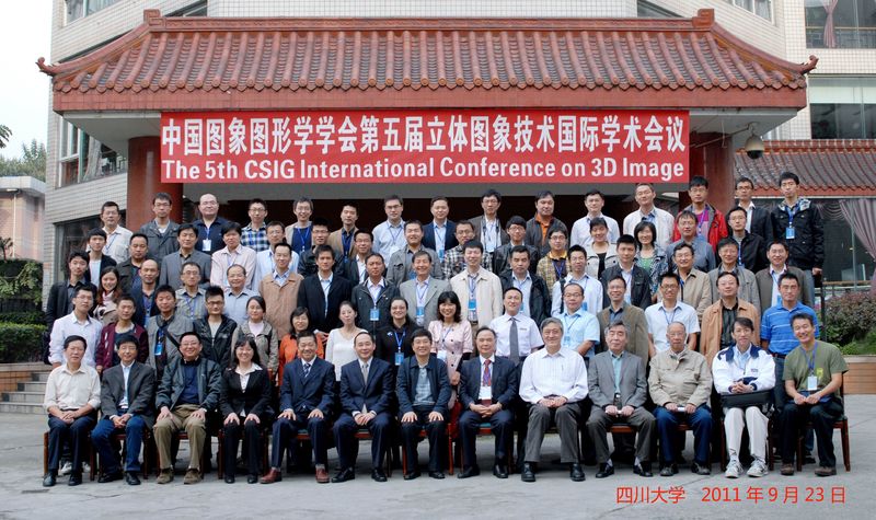 研究室于2011年9月22日—24日承办了“中国图象图形学学会第五届立体图象技术国际学术会议”(中国图象图形学学会主办)。来自德国、韩国、加拿大等海外高校,来自北京大学、上海交通大学、南开大学、天津大学、吉林大学、中山大学、东南大学、四川大学、电子科技大学、西安电子科技大学、西南交通大学等国内高校以及TCL集团股份有限公司、长虹电子集团有限公司和天马微电子公司等企业的专家学者近100人参加了此次会议。会议内容涵盖了3D显示、3D测量、3D采集编码等多个立体图像技术领域。会议同时进行了四川大学等单位在3D图像方面的成果展示,受到与会者的一致好评。